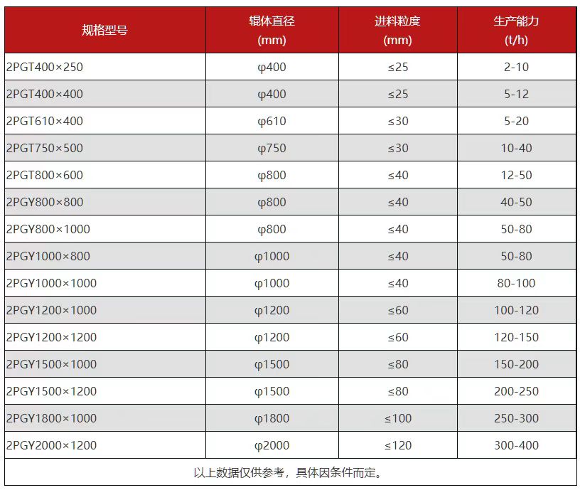 面對(duì)如此優(yōu)勢(shì)的碳素對(duì)輥破碎機(jī),很多客戶想到的是購(gòu)買,那么在購(gòu)買之前,對(duì)輥破碎機(jī)都有哪些型號(hào),規(guī)格參數(shù)、生產(chǎn)能力又有什么區(qū)別:
